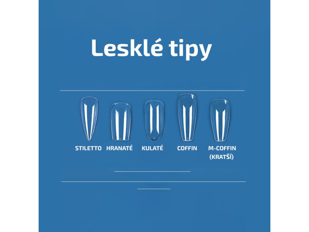 Tipy lze na nehet připevnit pomocí lepidla či samolepicích polštářků.