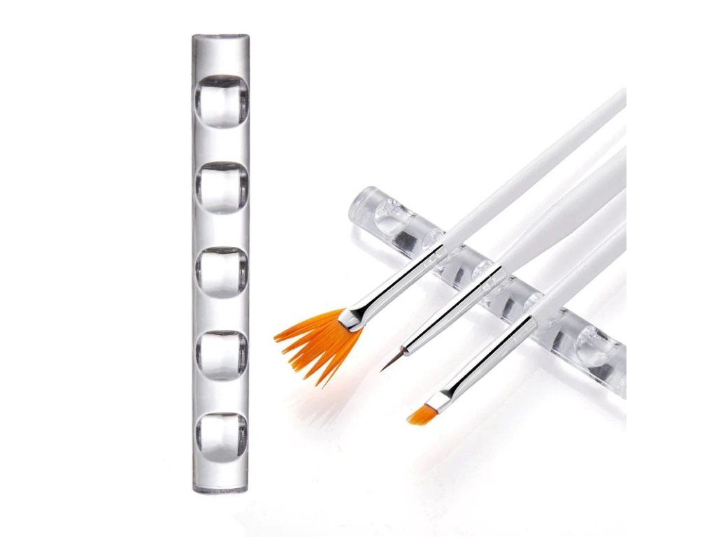 Dokonalý pořádek: Stojánek má 5 prohlubní, které bezpečně udrží štětce na svém místě. Už se vám nestane, že by se štětec s mokrou barvou dotkl stolu nebo se někam odkutálel.