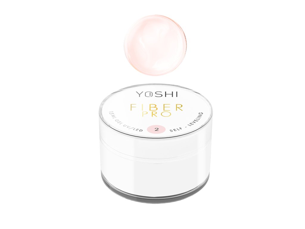 UV/LED zpevňující stavební gel z kolekce Fiber Pro od YOSHI s mikrovlákny Fiberglass v odstínu Clear; objem: 15 ml