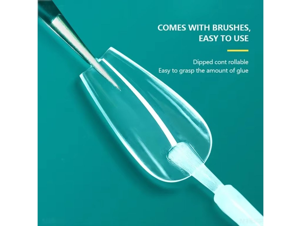 Lepidlo rychle zasychá, a proto je potřeba po aplikaci lepidla na nehet ihned přikládat nehtový tip či dekoraci.