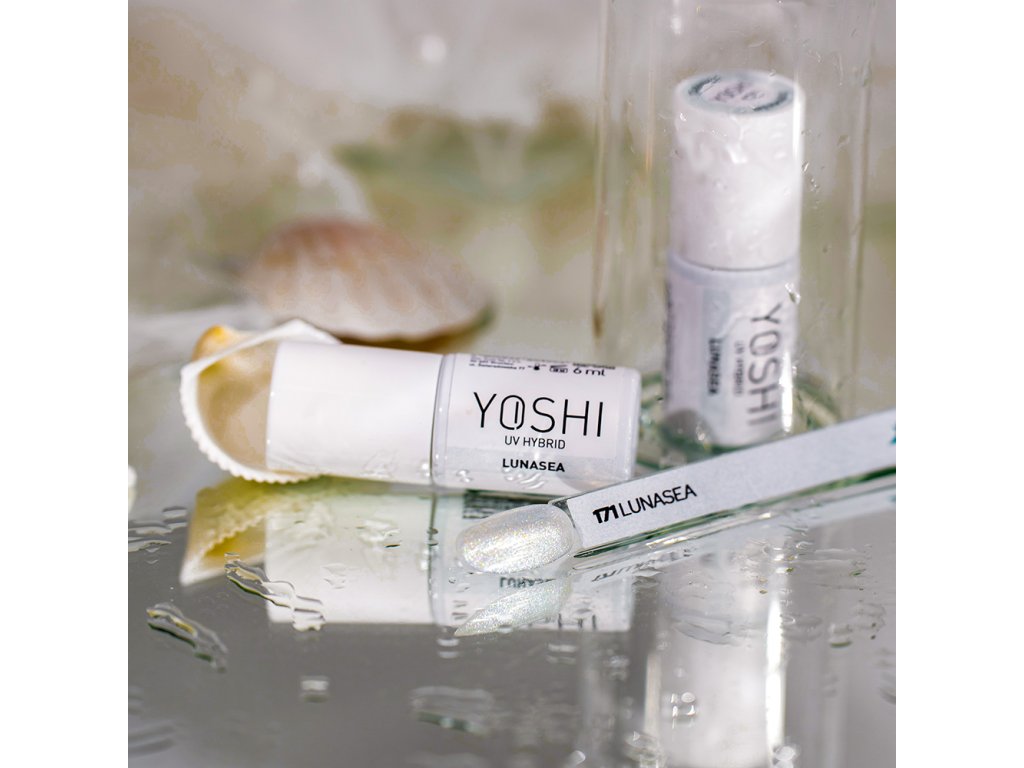 Odstín Lunasea: Lunasea je jemný krémový, téměř ledový odstín s holografickými třpytkami. Jeho perleťový finiš dodává nehtům jemný, elegantní lesk, který připomíná klidnou hladinu vody odrážející světlo. Ideální volba pro milovnice něžných, čistých a elegantních stylizací.