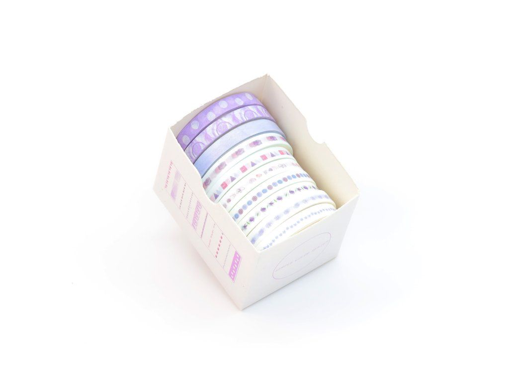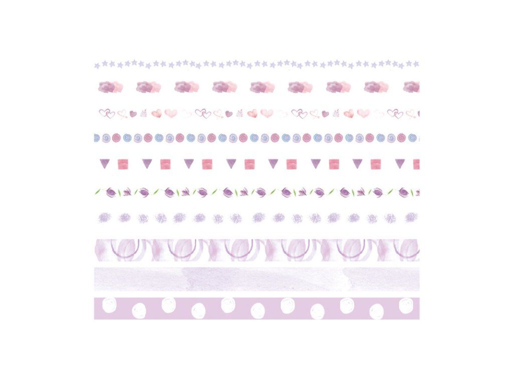 V sadě naleznete 10 washi pásek s motivy laděné do fialové barvy.