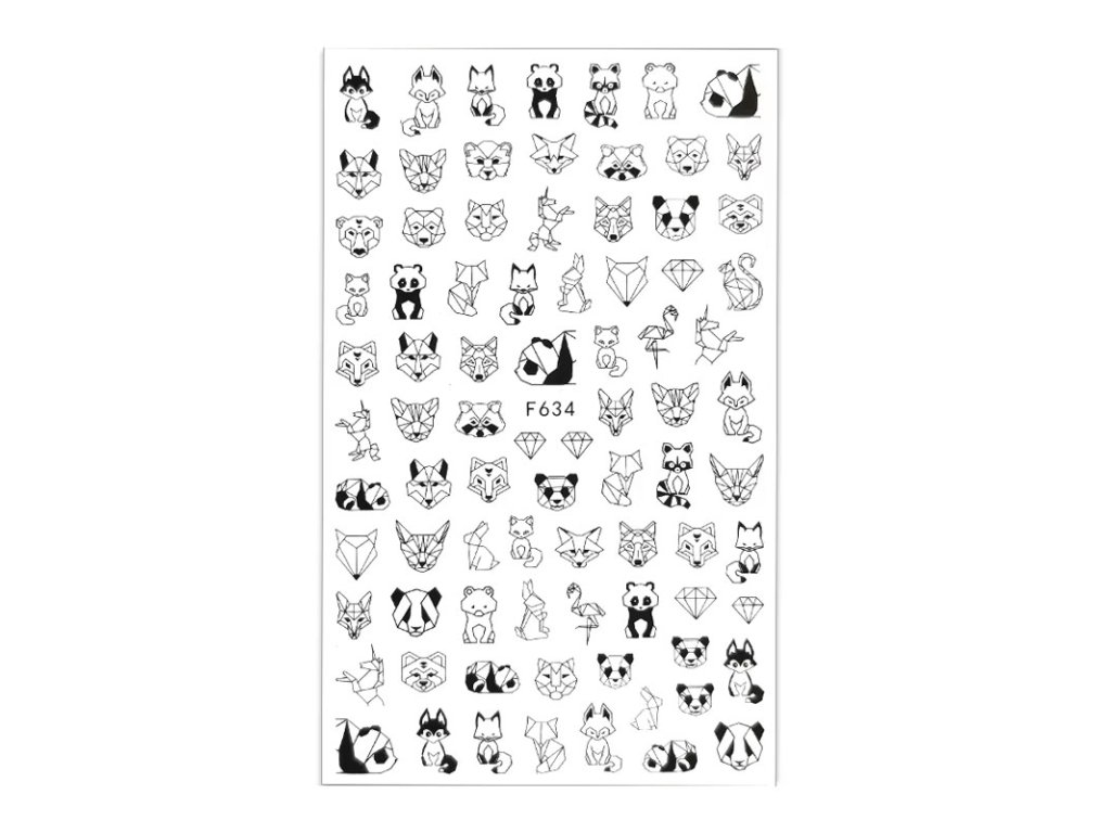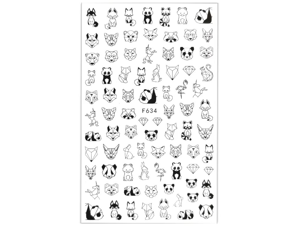 Samolepky Geometrická zvířátka vykouzlí na vašich nehtech moderní a roztomilé zdobení. Pozadí samolepek je transparentní, lze tak nalepit na jakoukoliv podkladovou barvu.