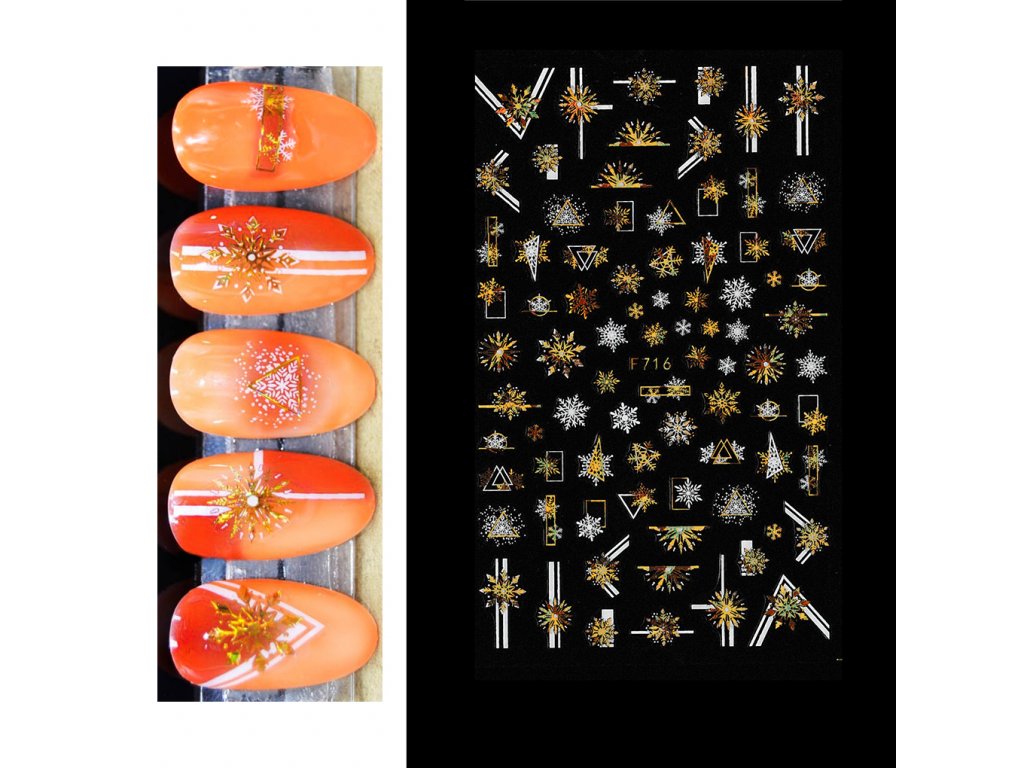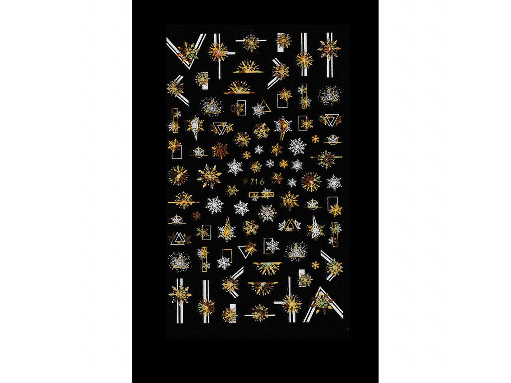 Samolepky Moderní vločky přinášejí geometrické doplnění zimních motivů - vloček. Zlatá barva na samolepkách má holografický charakter. Pozadí samolepek je transparentní, lze tak nalepit na jakoukoliv podkladovou barvu.