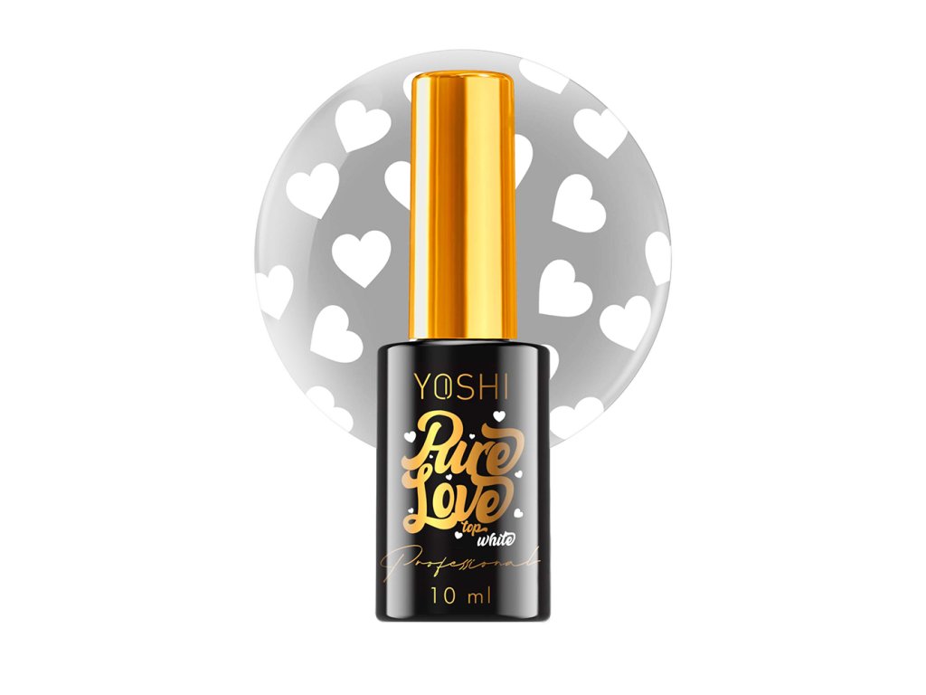 UV/LED vrchní Pure Love Top - Black od YOSHI s černými srdíčky; objem: 10 ml