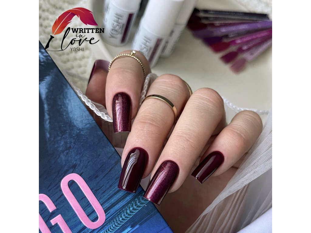 Odstín Pages of Passion: Hluboká vínová s intenzivním jiskřivým leskem jako každá stránka plná vášně. Elegantní a sytý odstín, který vyzařuje luxus a smyslnost. Jemné třpytky odrážejí světlo v tónech červené a růžové a dodávají barvě hloubku i výraznost. Ideální volba pro stylizace, které mají zaujmout a působit noblesně.