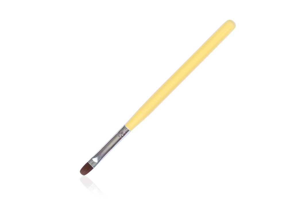 Dřevěný štětec Happy Brush pro modeláž nehtů obarvený do energické pastelově žluté barvy.